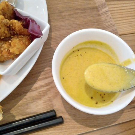 スイーツではないのに焼きバナナと思いつつスプーンを口に…「あっバナナだ~」メニューを知らずに飲んでもバナナだと思います。 先ずバナナを感じて後からかぼちゃがやって来る感じ。これ、おいしいです‼家でも作りたいです。