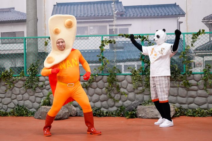 「お腹すいたよ!ナンマン」は、話題沸騰の「ナンマン」シリーズの第5話だ。パンダの少年(中野)が「お腹がすいて動けないよ〜 誰か〜」と空き地で助けを求めていると、ヒーロー・ナンマン(兎)がやってきた。顔のナンをちぎってあげると、少年がそれを食べて元気回復!「世界を平和で包み込む!ナンマン!」とポーズも決めて一件落着!…とはいかず。ナンマンが辺りを見まわしパンダの少年に疑問を投げかける。“正義”のヒーローというより“正論”を振りかざすヒーローのナンマンが、ネチネチと少年を追求していく…。