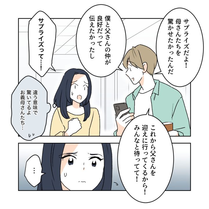 3. 浮かれた夫を誰も止められない。独断で招かれざる義父を呼び「サプライズだよ」義父がしんどい|ママ広場マンガ