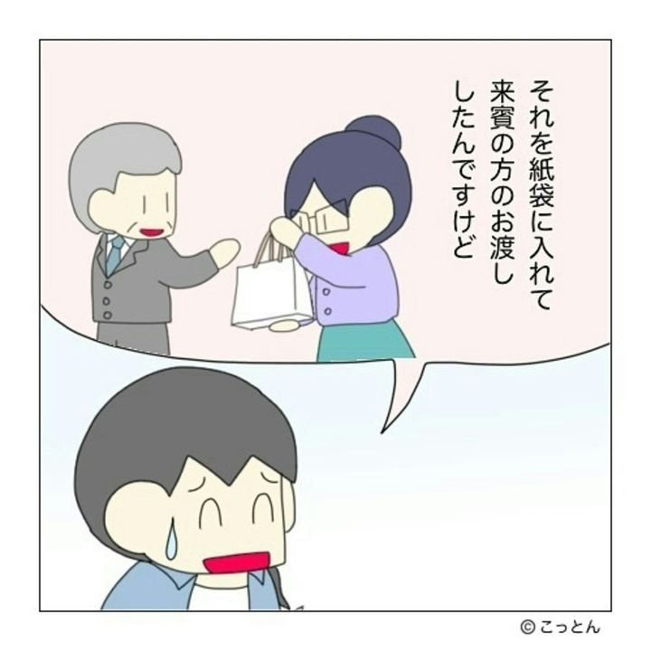 毎年、子ども会のイベントに招待している来賓に、紅白まんじゅうを渡しています。そのときに、来賓に「エコじゃない」と言われたことに対し、べき子さんは「非常識」と怒ります。