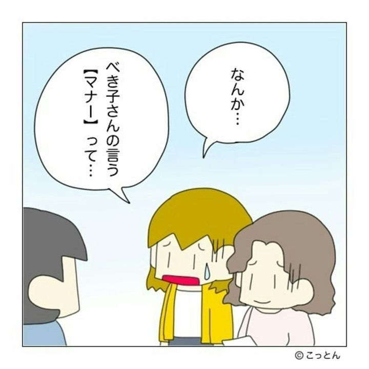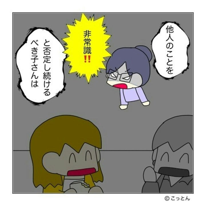本作では、「非常識!」が口ぐせで、周囲を圧力で支配しようとした、子ども会会長とのエピソードが描かれています。べき子さんは自分のふるまいによって、結果的には孤立してしまいました。