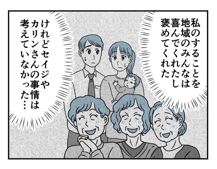 地域のために熱心に頑張ることは、決して間違いなんかじゃないですよね。ご近所付き合いだって大事です。ただカリンさんに同じだけのことを要求したり、息子さん夫婦に相談もせずに勝手に決めたりしたことが問題だったのでしょう。そのために同居するメリットがないと判断されてしまったことを、ようやくお義母さんは気付いたのでしょうか……。