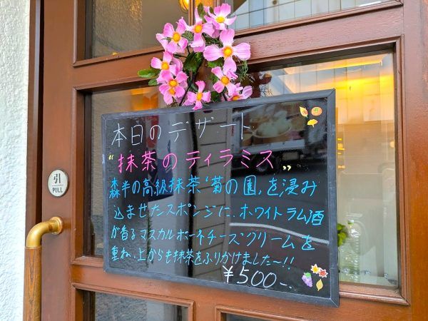 以前から、ず~と気になっていた喫茶店があります。なかなかドアを開ける勇気がなく、今回、近づいてみるとドアに「本日のデザート」が書いてあります。