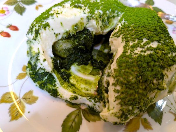 京都宇治、天保7年(1836年)の老舗茶屋「森半」の伝統的な石臼で挽いたお点前用の高級お抹茶です。固めに泡立てた生クリームに似たマスカルポーネのフレッシュチーズがおいしいです。