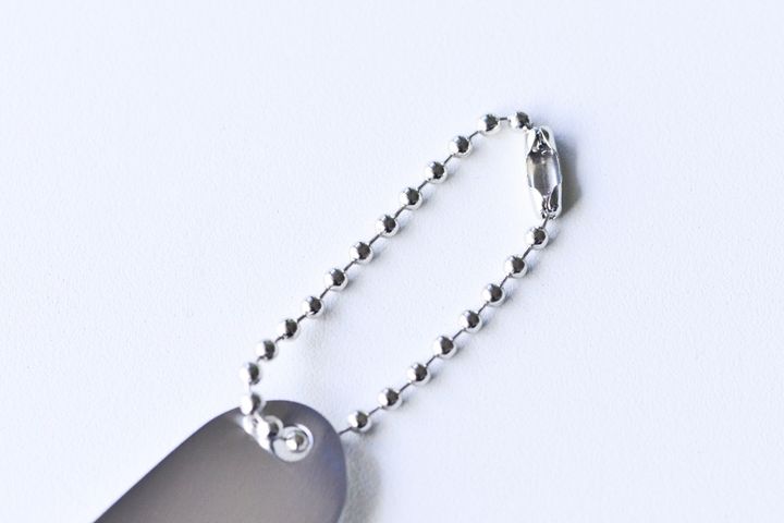 ボールチェーン付きなのもポイントです。キーケースやキーホルダーに付けるのはもちろん、バッグに付けるのにも便利ですね。