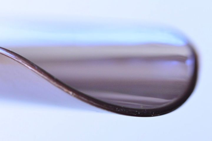 左右上下のカーブは少なめですが本体先端はかなり薄くなっています。