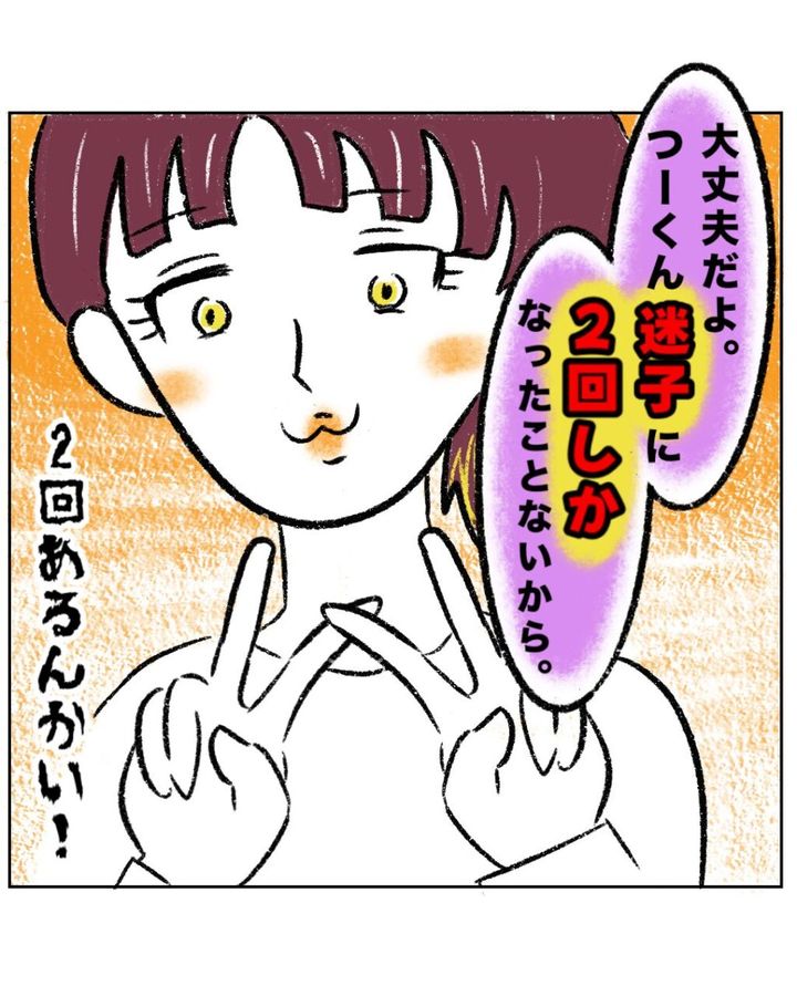 すると、つーくんママは「大丈夫だよ。つーくん、迷子に2回しかなったことないから」とさらり。