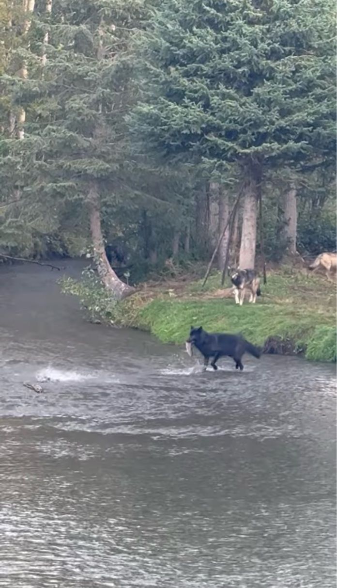 厳しい自然界を生き抜く野生のオオカミたち。 食料の魚を手に入れるために、群れで協力する様子が目撃されました!