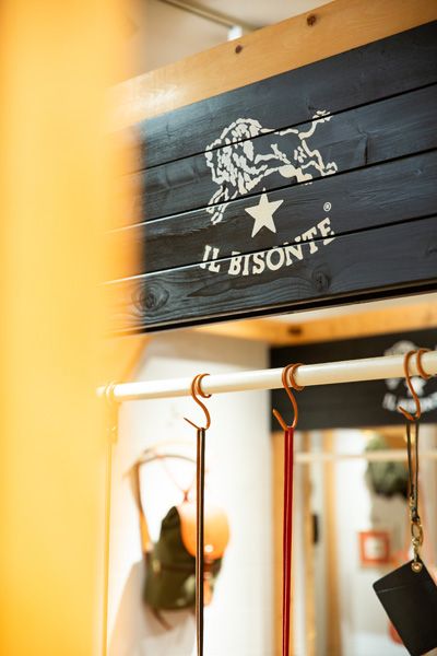 「IL BISONTE(イル ビゾンテ) 銀座店」はブランドの魅力を深く感じ取れる場所です。場所は銀座一丁目駅から歩いてすぐ。銀座の真ん中エリアにふさわしい、落ち着いた空間です。自然なぬくもりに包まれるのは、インテリアにウッドを多用しているから。まるで本国イタリアの工房を訪れたかのような雰囲気を味わえます。