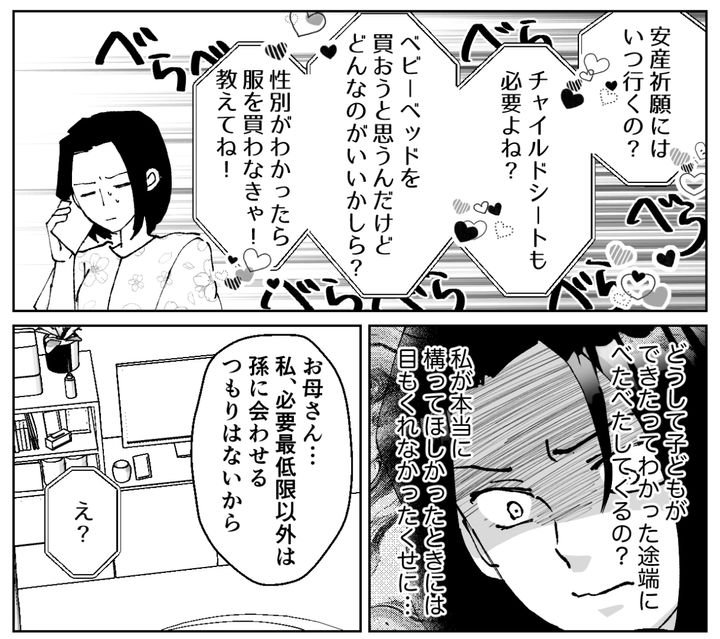 私は嫌気がさし、母に「孫に会わせるつもりはない」とハッキリ告げました。母への期待はもうありません。これからは、私を受け入れてくれる夫、そして子どもと生きていきます。