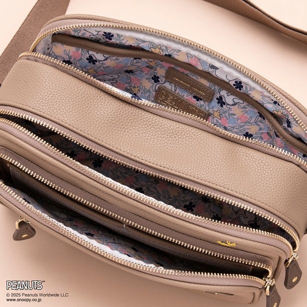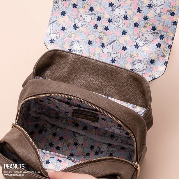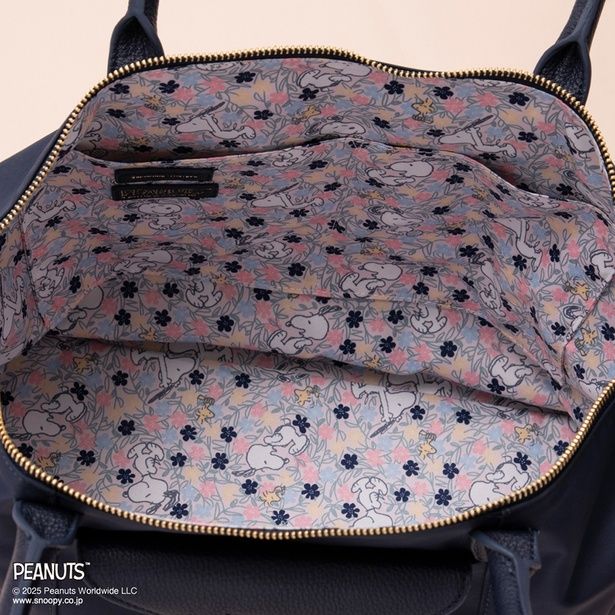 いずれも、内側にフラワーモチーフとスヌーピーの総柄ファブリックがあしらわれているから、ファスナーを開けるのが楽しくなりそう!