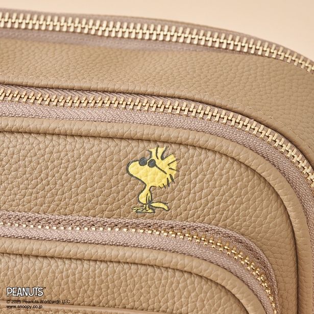 ジョー・クールとサングラスをかけたウッドストックが刺しゅうされた「ショルダーバッグ」(各2万9700円)は、コーディネートになじみやすいネイビーとグレージュの2色展開。メイン収納にくわえて前後にファスナー付きの収納スペースが備わり、コンパクトながらも収納力はたっぷり!