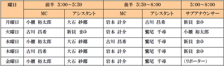 また、岩本アナウンサーの後任メインMCには、ABCテレビの古川昌希アナウンサーが就任する。