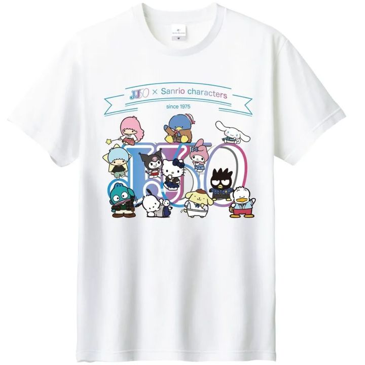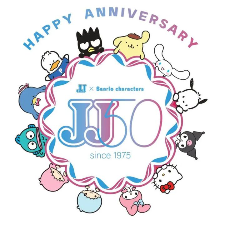 さらにキービジュアルに加え、JJ 創刊50周年記念ロゴをサンリオキャラクターズがお祝いするように囲むコラボデザインや、サンリオキャラクターズが「JJ50」のロゴと組み合わさったデザインを中心に全12アイテムを展開!