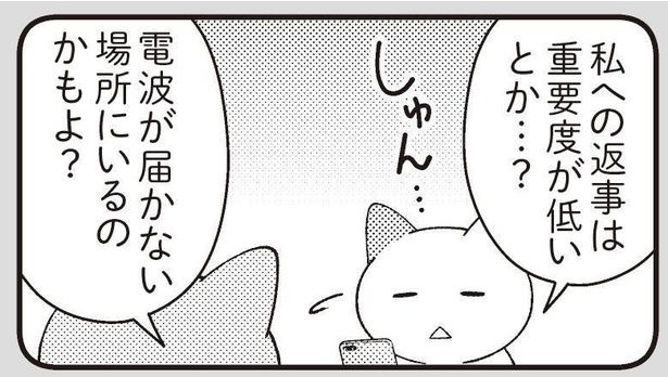 ――休み下手さんは自己肯定感の低い人が多いそうですね。人から嫌われることも気にしがちで、4コマ漫画に登場するねこは、未読のメッセージやメールに心がざわついているようです。