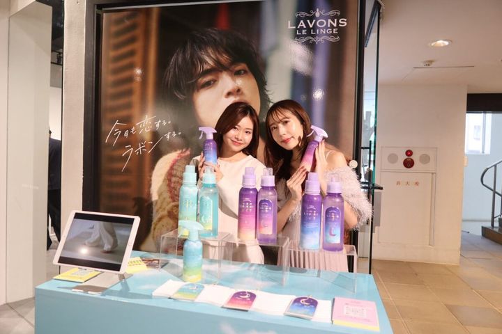 ラボン トゥザムーンの「グリーンヘブン」「トワイライトマジック」「ノクターナルブルー」の3種類の香りを体験できるブースも展開。