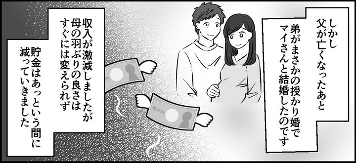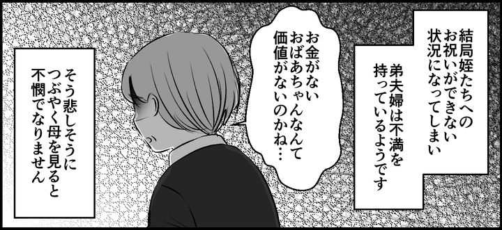 しかし義妹はいつも不満げです。母が姪っ子たちにお祝いを渡したり、お金を援助する余裕がないからです。かつては実家も裕福でしたが、父が亡くなったあとは、あっという間に資金が尽きてしまいました。