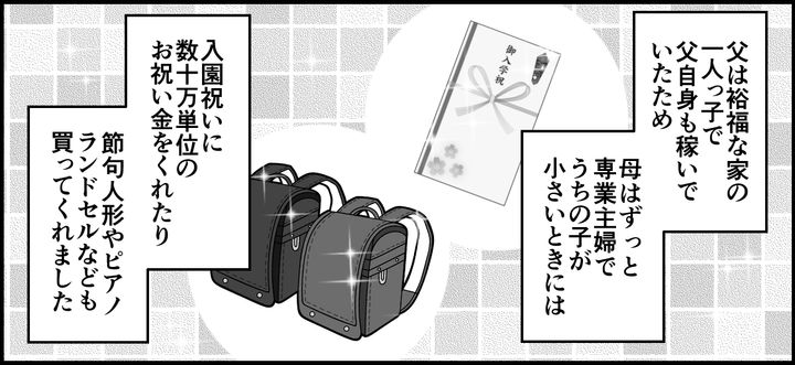 うちの子たちが小さいときは、父が現役で働いていたため、節目で毎回数十万単位のお祝い金をくれました。他にも雛人形に五月人形、ランドセルやピアノなど、必要なものはすべて両親が購入してくれました。また、年に2回は両親の負担で家族旅行に連れていってもらっていました。