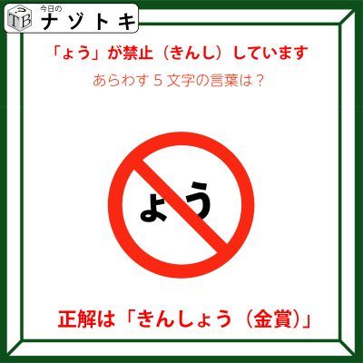 「ょう」のまわりの記号の意味を考えましょう。これは標識でよく見かけますが、ざっくりな意味としては「禁止(きんし)」となるのではないでしょうか?