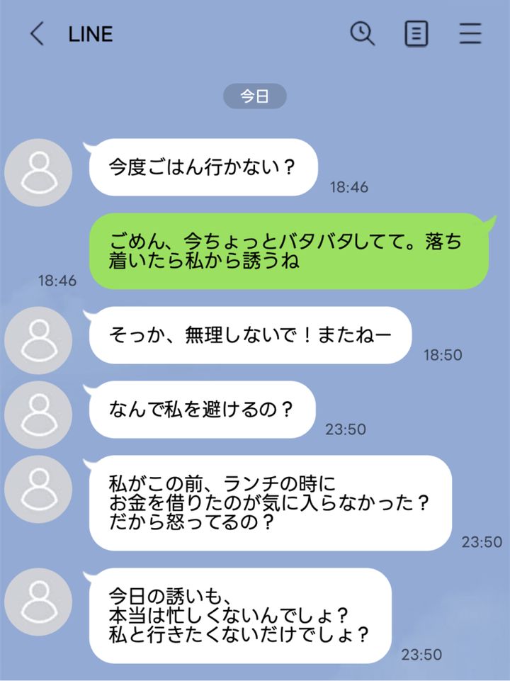 3. 友人「なんで避けるの」届いたLINEがまるで怒りの報告書…食事の誘いを断っただけなのに?【短編小説】