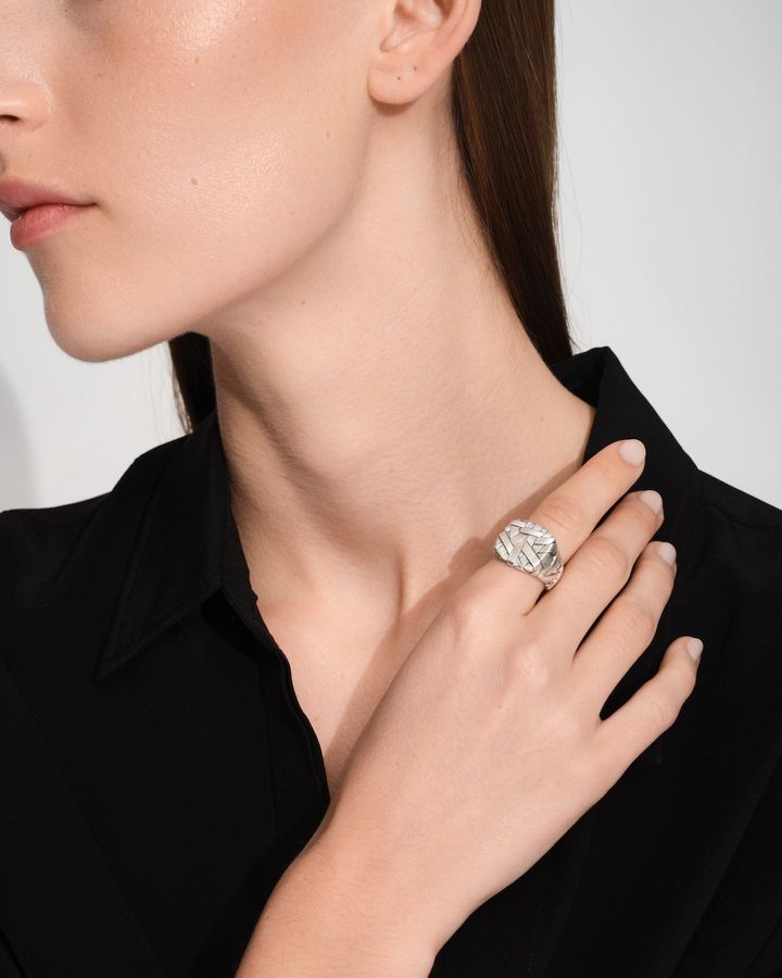 「ブランドのアイコンであるシグネットリングが“キルティング”されたら?」そんな遊び心ある発想から生まれた「キルトリング」。シグネットリングを通常の10倍のサイズで3Dプリントし、伝統的な手法を用いて1点ずつ手作業でキルティングモチーフを施した。ミニマルなフォルムに有機的なニュアンスが加わり、独自の質感とフォルムが際立つデザインが魅力だ。