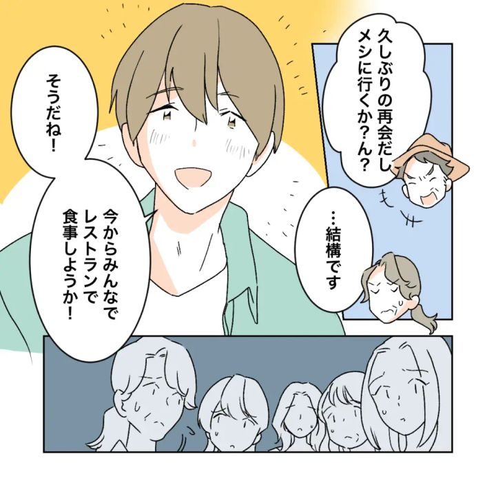 結局、お祝いの空気を乱さないよう、みんなで食事に行くことになりレストランへ。