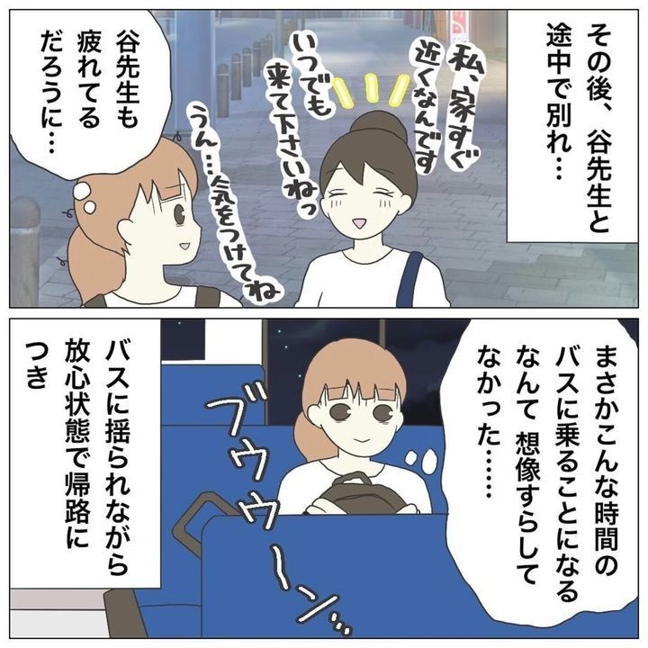 ようやく退勤時間を迎え保育室を後にしますが、そこにはなぜか、とっくに勤務を終えているはずの早番の先生たちの姿が。求人票には残業時間0と書かれていたはずでしたが…。