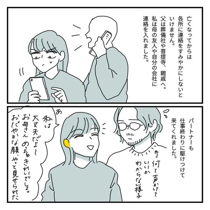 さらに、死亡確認に訪れた医師や看護師の真摯な対応にも感動し、大変な介護生活は終わりを迎えたのでした。