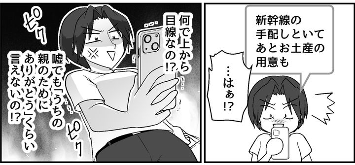 夫の心情を思って寄り添うような言葉をかけたのに、返ってきたのは事務的な指示だけ。新幹線の予約を取っておけとか、地元の親戚に配るお土産を用意しろとか……。自分の実家のことなのに、その態度には腹が立ちます。