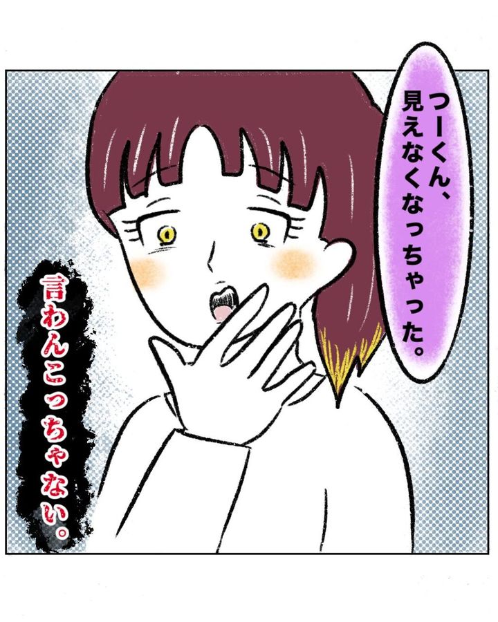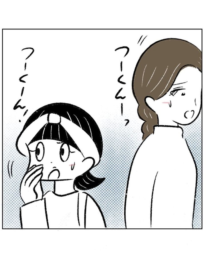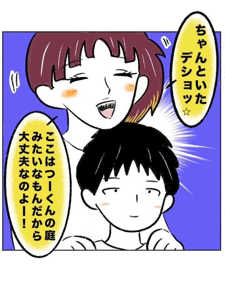 「つーくん、見えなくなっちゃった」と言いながらもあせる様子もないつーくんママ。まるさんは心の中で「言わんこっちゃない」とつぶやきました。