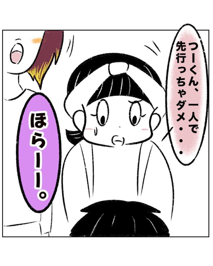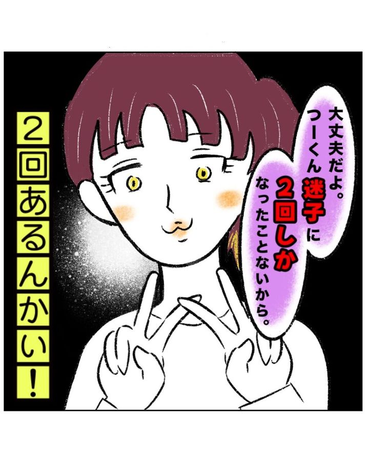 一人でどんどん先に歩いて行ってしまうつーくんを心配するまるさんに、つーくんママは「つーくん2回しか迷子になったことないから大丈夫だよ」とあっけらかんと言いました。
