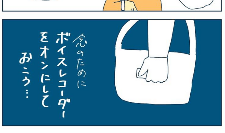 ユズさんは体調不良のため遅刻の連絡を入れ、少し休んでから不安を抱えつつボイスレコーダーを準備して出勤します。謝罪するユズさんに、店長は「なに? つわり?」と問いかけました。体調不良のつらさに加えて、職場での緊張感まで重なり、本当に苦しい状況ですね。