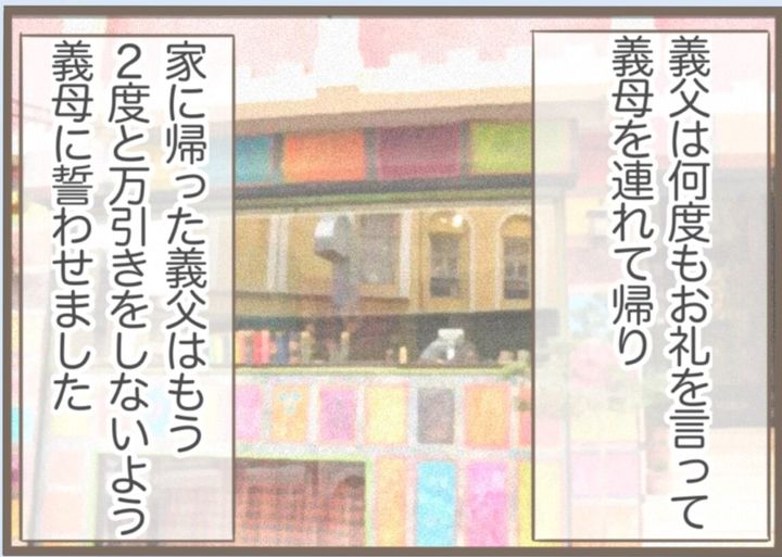 【漫画】反省せず激怒したり泣いたり…店主は同情して許してくれた【前科持ちの義母と同居 Vol.43】