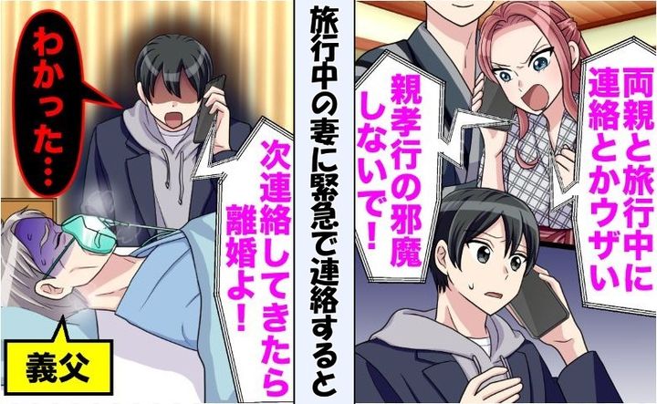 3. 「両親との旅行だから邪魔するな!」妻から言われたひと言。ところが義父は倒れて病院にいて?