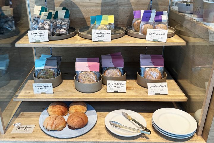 レジのすぐ横のカウンターには、系列店で販売している焼き菓子やパンも販売されています。手みやげや自分へのご褒美にもぴったりです。