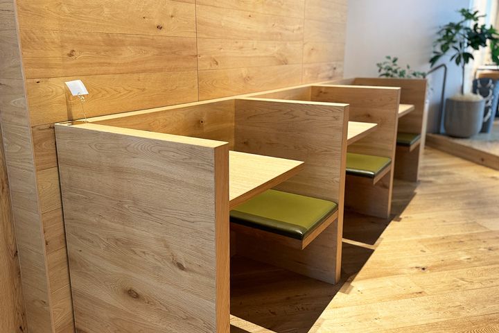 テーブル席以外にも、カウンター席が3つ、プライベート感のある1人掛けの席が3つあり、座席の種類が豊富です。