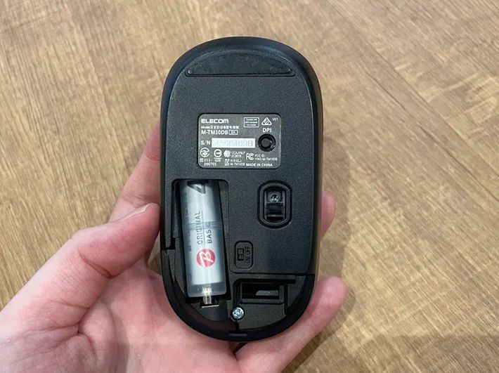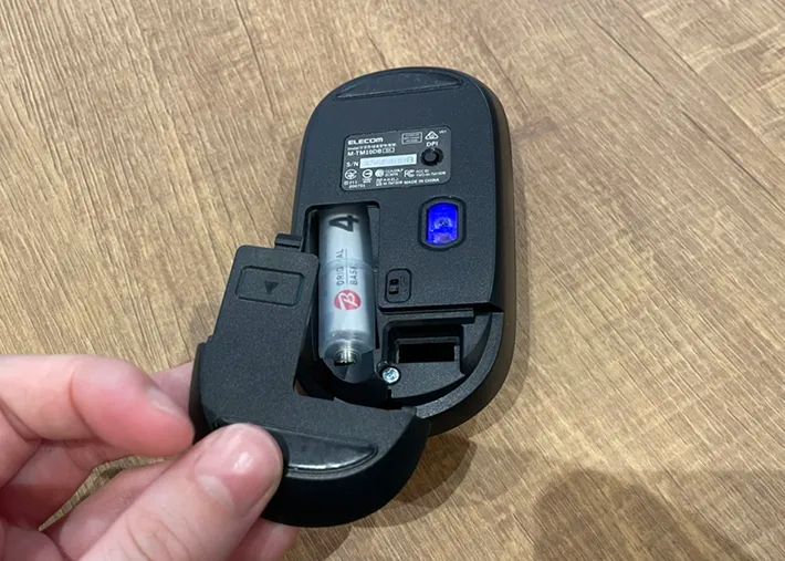筆者が使っているマウスは、単3電池1個で動くタイプ。