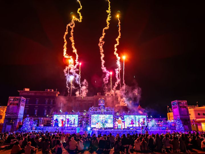 お馴染みのクリスマスソングにのせて、光と音楽、そしてパイロ(花火)が夜空を彩る、壮大なエンターテイメントの見どころを詳しく紹介します。