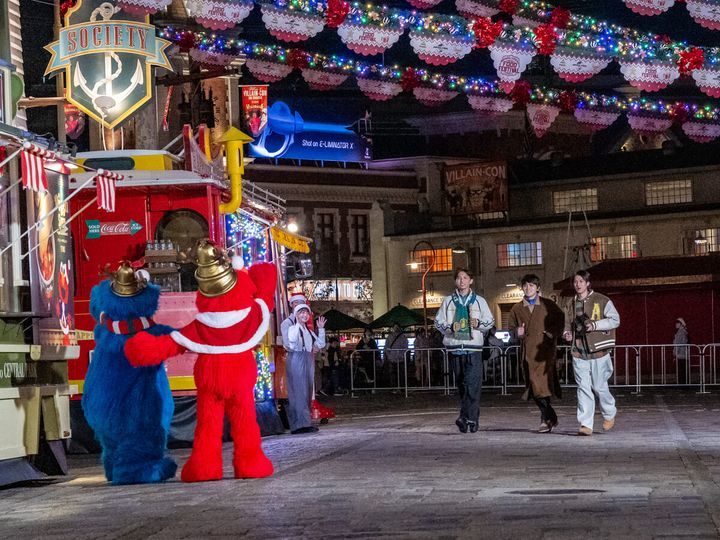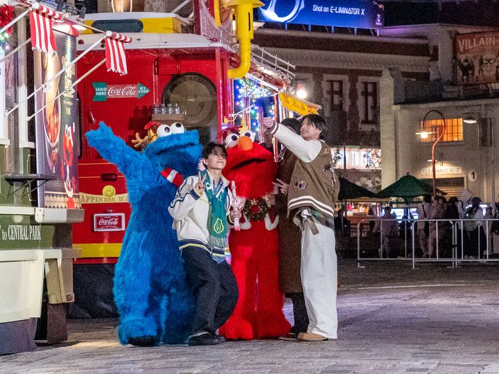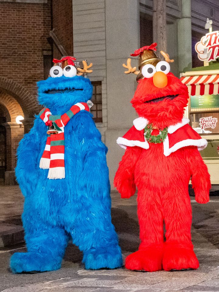 さらに、クリスマスコスチュームの「エルモ」と「クッキーモンスター」と合流し、一緒にセルフィー撮影を楽しみました。