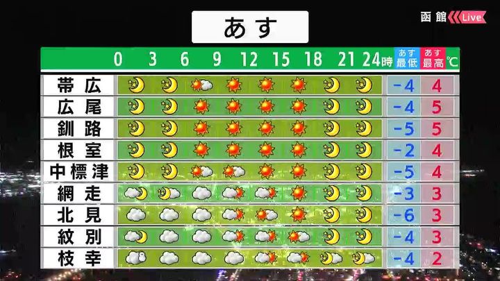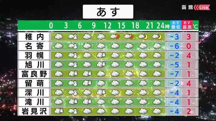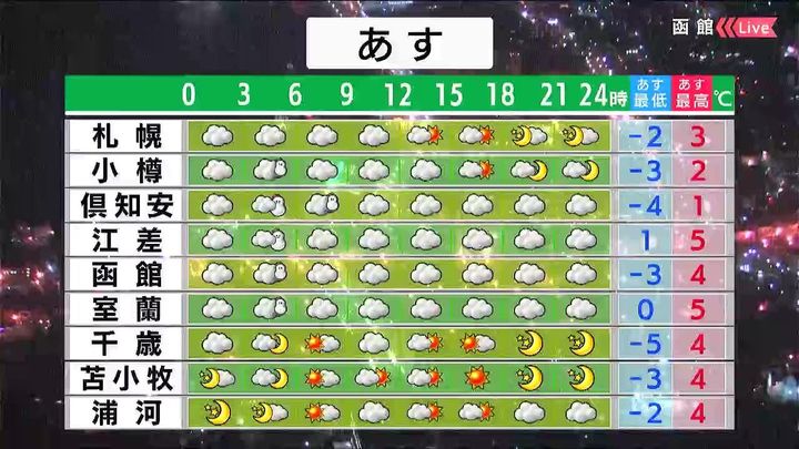 ・あすの札幌の朝昼晩の天気