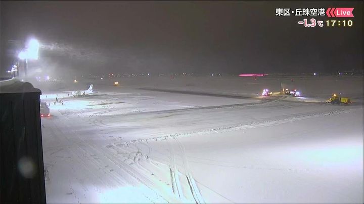 背景は18日午後5時ごろの丘珠空港情報カメラ
