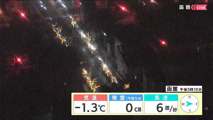 今朝、函館ではこの冬初めて積雪を観測しました。歩行者も濡れた路面の凍結に気を付けて下さい。