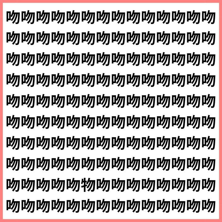 たくさんの「吻」の中に、1文字だけ違う漢字が混ざっています。