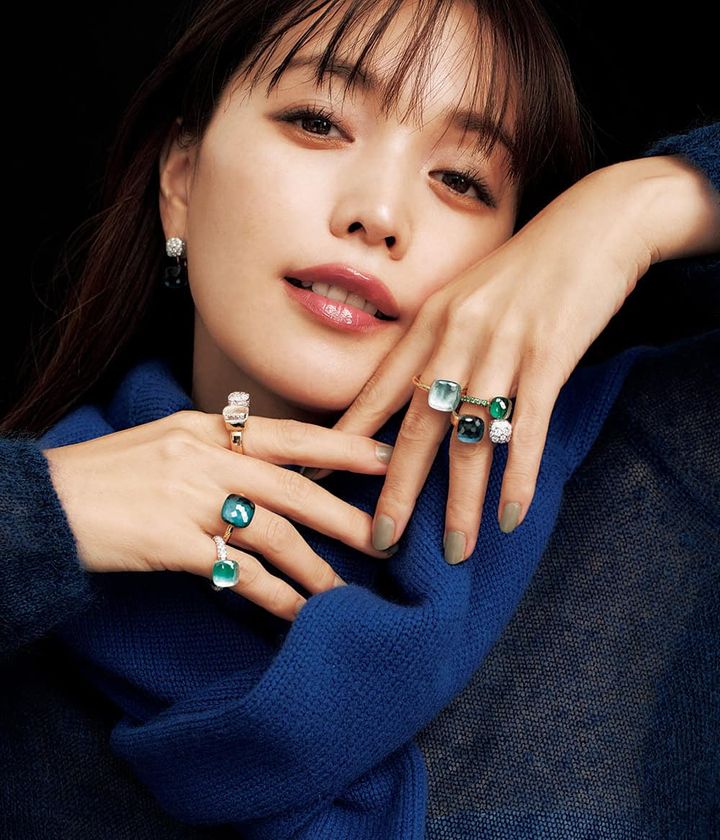「いつも目に入る手元のジュエリーは〝好き〟を重ねて多忙な毎日にご自愛を。大好きなブルーの色石を贅沢にグラデーション。光を取り込み、角度によって表情を変える。そんな佇まいに癒しと高揚感をもらえます」