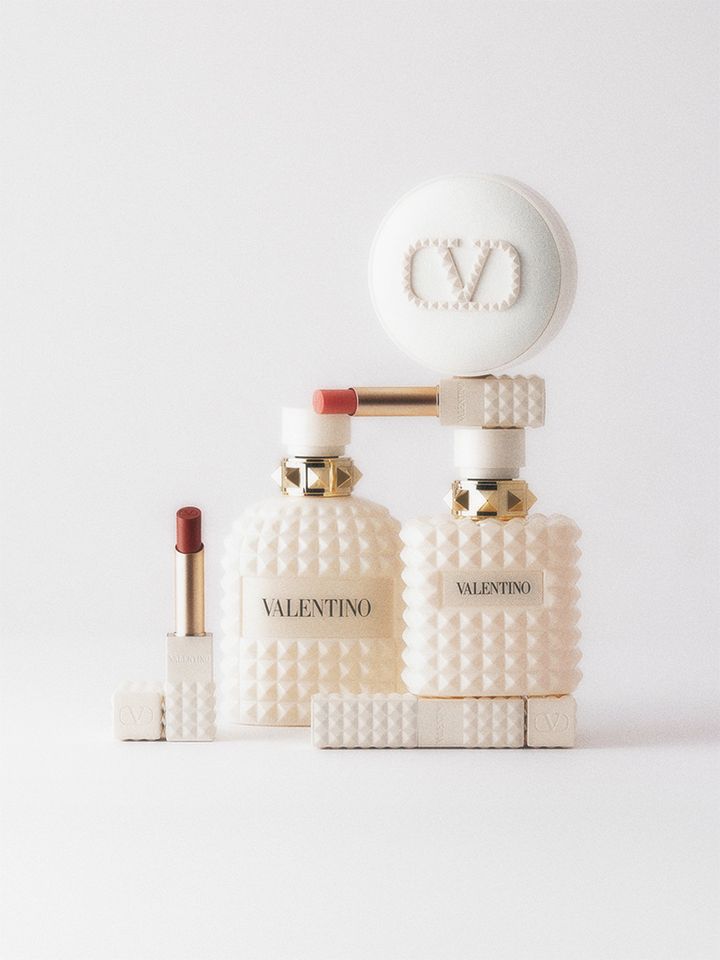 アイコニックなスタッズが象徴的なヴァレンティノ ビューティ。ホリデーに向けて登場するのは、クチュールらしさあふれる、初雪におおわれたようなやさしいアイボリーの限定パッケージ。どんな色も受け入れつつ確固たる自我も秘められた、はかなくも凜とした佇まいが、メイクにまた新たな高揚感を与えてくれる。