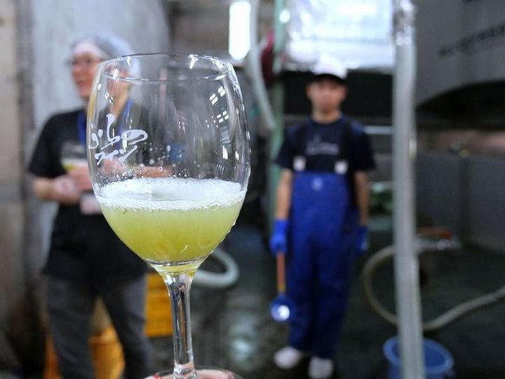 そして樽貯蔵庫では、訳アリのアシリフラヌイ ケルナー2023を、特別に頂くことに。『実は若干酵母が残っており、再発酵の危険性があるため、自主回収した商品なのです。ただ人体に害などは全くなく味はとても美味しいので、せっかくの機会なので味わってみて下さい。』