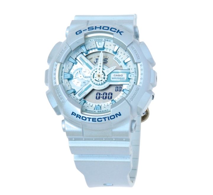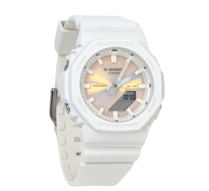 【上から】盛夏にぴったりのメタリックブルー。タフなルックスながらコーディネイトに軽やかさをプラス。腕時計¥21,450、モードなホワイトで手元に抜け感を演出。腕時計¥18,700/ともにG-SHOCK、3.長く愛されるクラシックなデザイン。腕時計¥5,170/CASIO CLASSIC(以上すべてカシオ計算機 お客様相談室)