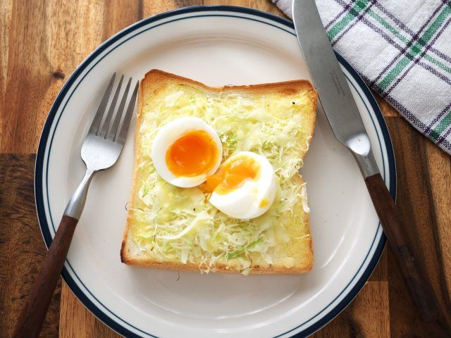 冷凍トーストで朝を楽ちんに!カットキャベツと卵やツナで簡単に作れます。