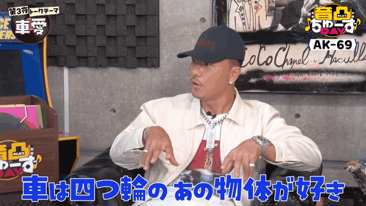 下埜が用意した6つのトークテーマから、AK-69さんが次に“ちゅーず”したのは「車愛」。