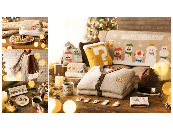 暖かく冬を過ごすのにぴったりな「スーパーマリオ ウィンターコレクション」シリーズ。雪だるまに変身したマリオ達をモチーフにしたグッズです。今回新たに「ニットキャップ」「ニットマフラー」「くるみボタンヘアゴムセット」「ワイヤーポーチ」そして、「ポップアップメッセージカード」が登場しました。